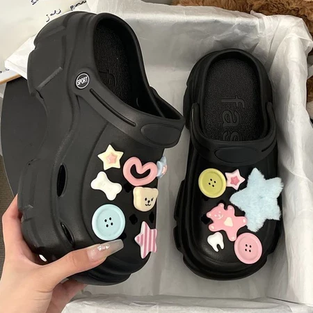 Dép nữ, Dép Cross đế cao 5cm, Dép Crocs nữ, Sticker Gấu ngôi sao cúc áo