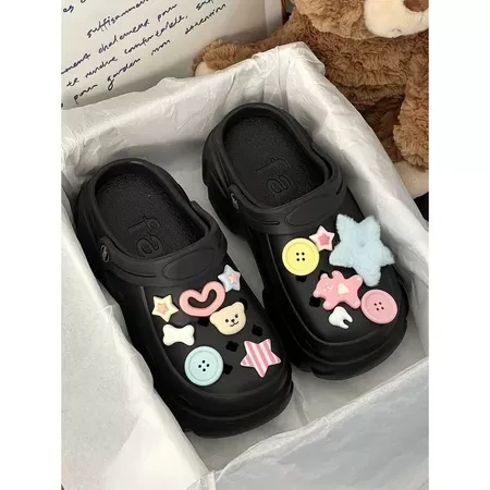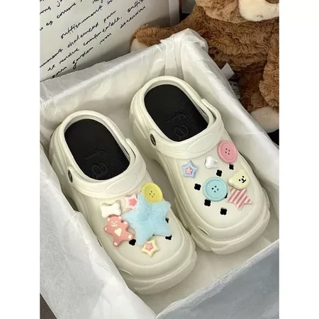 Dép nữ, Dép Cross đế cao 5cm, Dép Crocs nữ, Sticker Gấu ngôi sao cúc áo